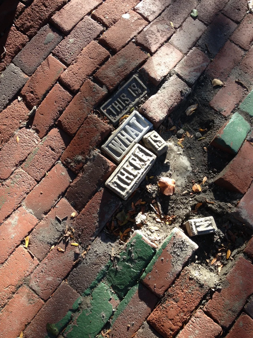 Finally, I envisioned the bricks as meaning-making tools while they filled in the gaps in the sidewalks. I was inspired by magnetic poetry, and thought that the pieces could be moved around to create new meanings.